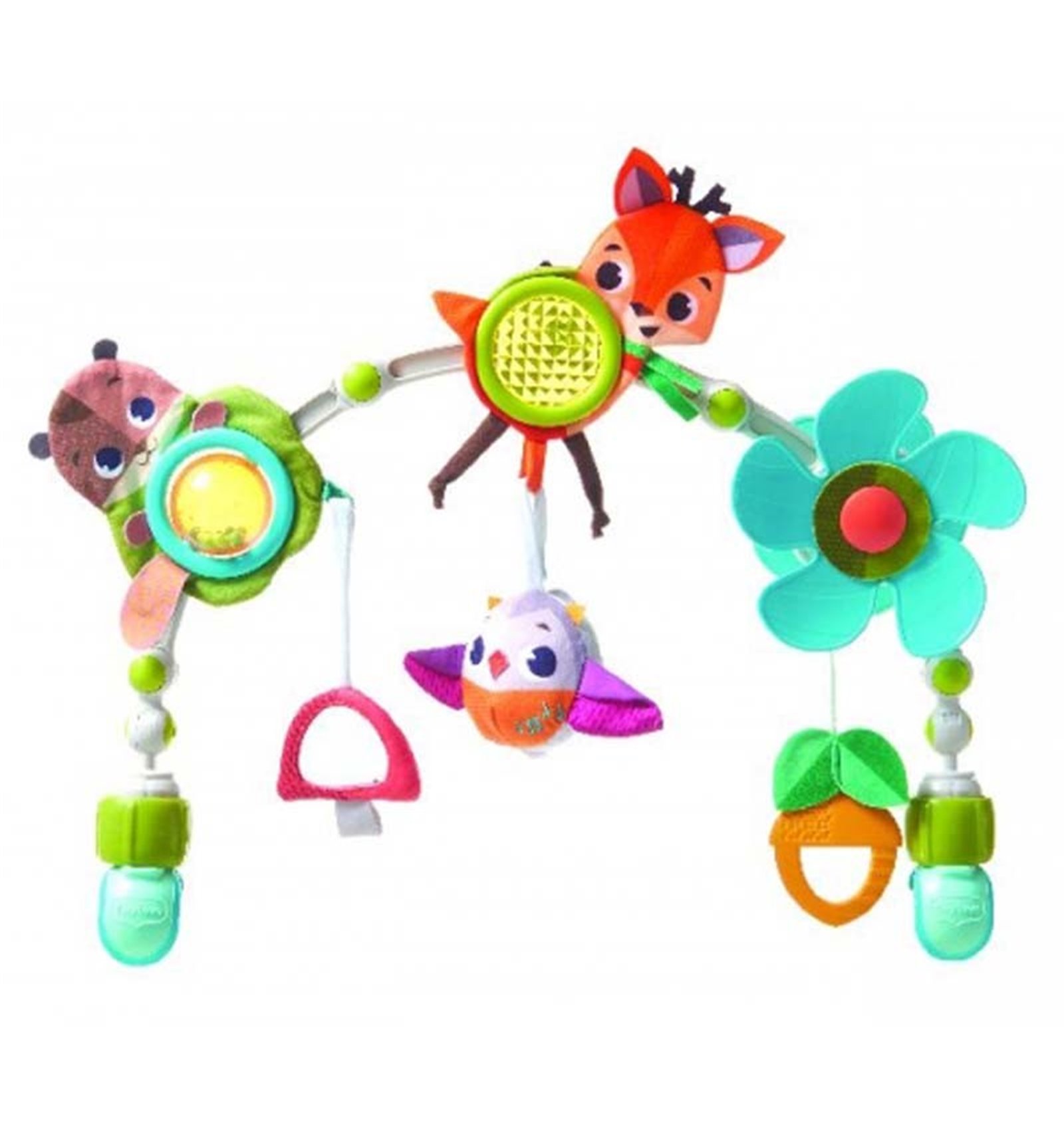 Развивающая дуга с универсальным креплением, подходит для коляски, автокресла, кроватки или шезлонга. 7 детских игрушек предлагают множество развлечений во время прогулки, создавая развивающие условия для детских рук и возможность пользоваться хватательным рефлексом. Электронная игрушечная птичка воспроизводит 4 различные мелодии и может быть активирована ребенком. Гибкая дуга легко регулируется и настраивается под нужды ребенка. Развивающая дуга предназначена для двух этапов развития - визуального и сенсорного восприятия от (0м +) и познания причинно-следственных связей от (5m +).