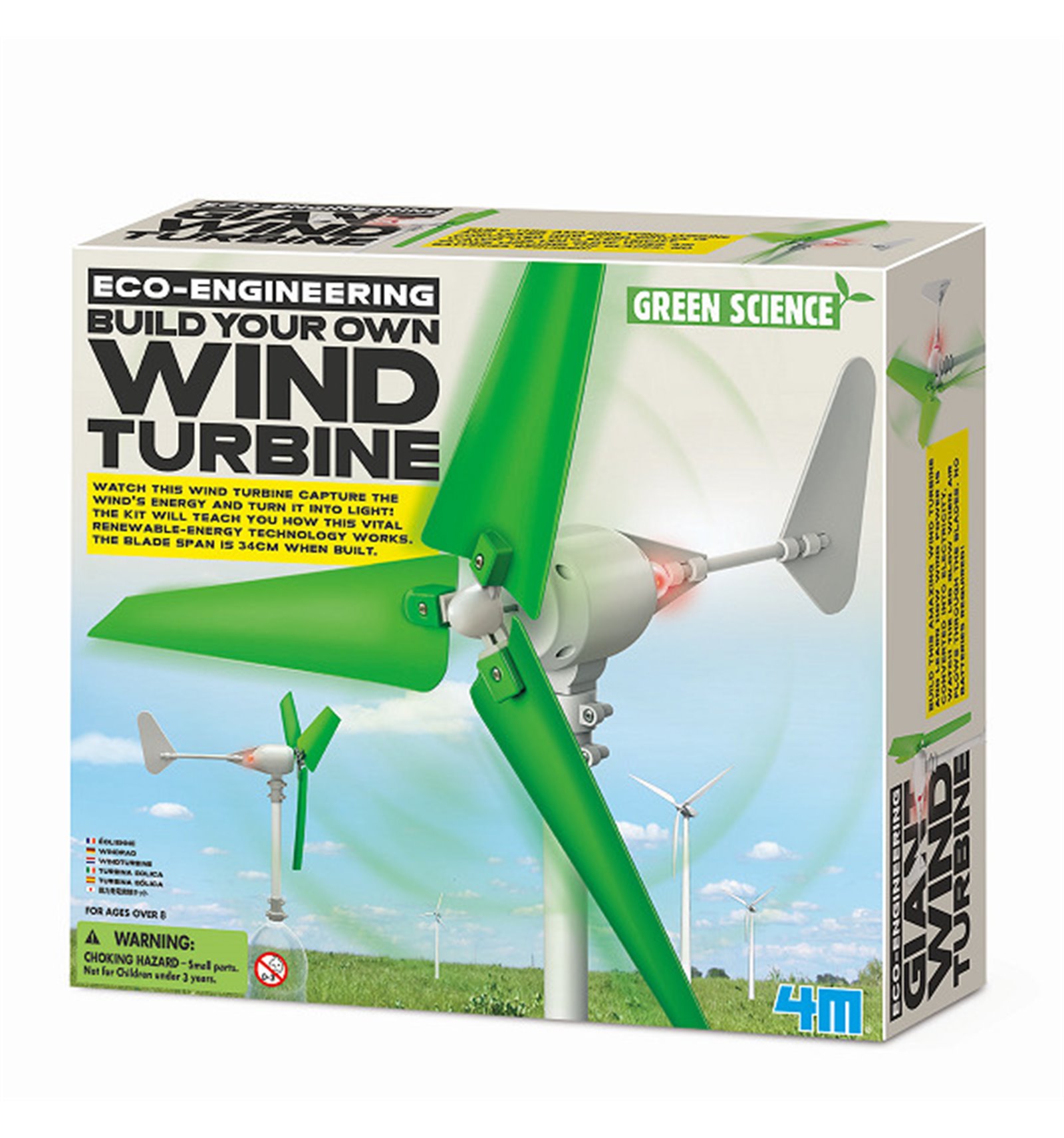 Постройте из этого набора макет ветрогенератора и наблюдайте, как он улавливает энергию ветра и превращает ее в свет. С этим комплектом ребенок узнает, как работают возобновляемые источники энергии.После сборки ветрогенератора по инструкции, вынесите модель на улицу и расположите на открытом пространстве, при возможности на возвышении. Когда ротор начнет вращаться со определенной скоростью, загорится светодиод в задней части гондолы, показывая, что генератор производит электричество.Ветрогенератор превращает энергию ветра в свет. Логика этой технологии проста: ветер – это просто движущийся воздух, а все, что движется, обладает энергией. Лопасть преобразует энергию ветра во силу, и это заставляет ротор вращаться. Затем турбина улавливает энергию ветра и передает ее генератору. Он превращает кинетическую энергию от ротора в электричество, которое питает светодиод.Лопасть удерживает ротор в направлении ветра, чтобы ротор улавливал как можно больше ветра. Энергия ветра является формой возобновляемой энергии. Потому что ветра никогда не перестанут дуть, даже если ветер есть не постоянно и не везде.