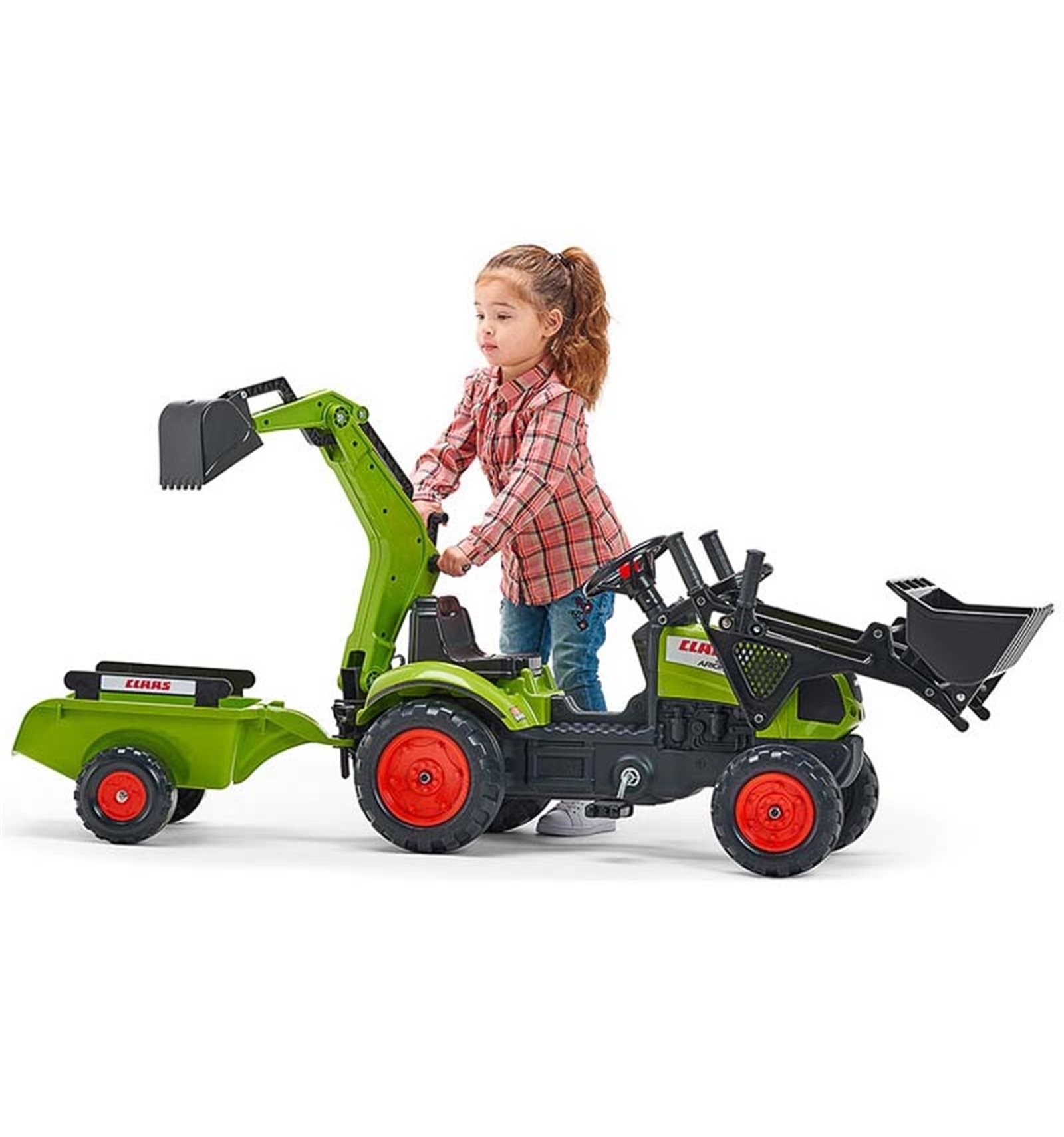 Этот трактор Falk Claas с передним и задним ковшом специально разработанный для маленьких искателей приключений от 2 до 5 лет, и является точной копией с педалями модели Claas Arion 410. Вы можете легко прикрепить прицеп с боковыми панелями, что позволит транспортировать песок, листья, почву и камни с одного конца сада в другой.