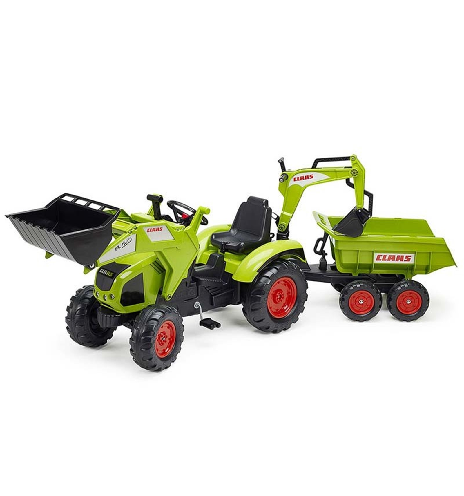 Больше, чем просто трактор! Эта 100% сделанная во Франции игрушка является точной копией с педалями настоящего трактора Axos 330. Детский трактор будет идеальной игровой платформой для маленьких искателей приключений от 3 до 7 лет. Сиденье кабины трактора поворачивается на 360°, благодаря чему ваш ребенок может легко добраться не только до рулевого колеса с сигнальной кнопкой, но и до фронтального погрузчика и заднего ковша экскаватора. В комплекте прицеп на 4 мощных колесах с функцией опрокидывания, который предлагает неограниченные игровые возможности. Ковш и экскаватор управляются специальными ручками управления. Копать и перевозить никогда не было так весело!