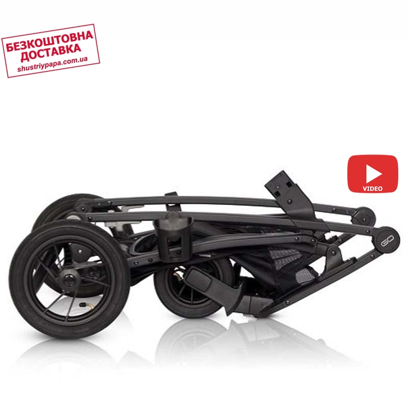 Коляска позволяет складывать шасси вместе с сиденьем, не нужно отсоединять и снимать прогулочный модуль, просто одной рукой сложить полностью, и все можно компактно поместить в багажник автомобиля.