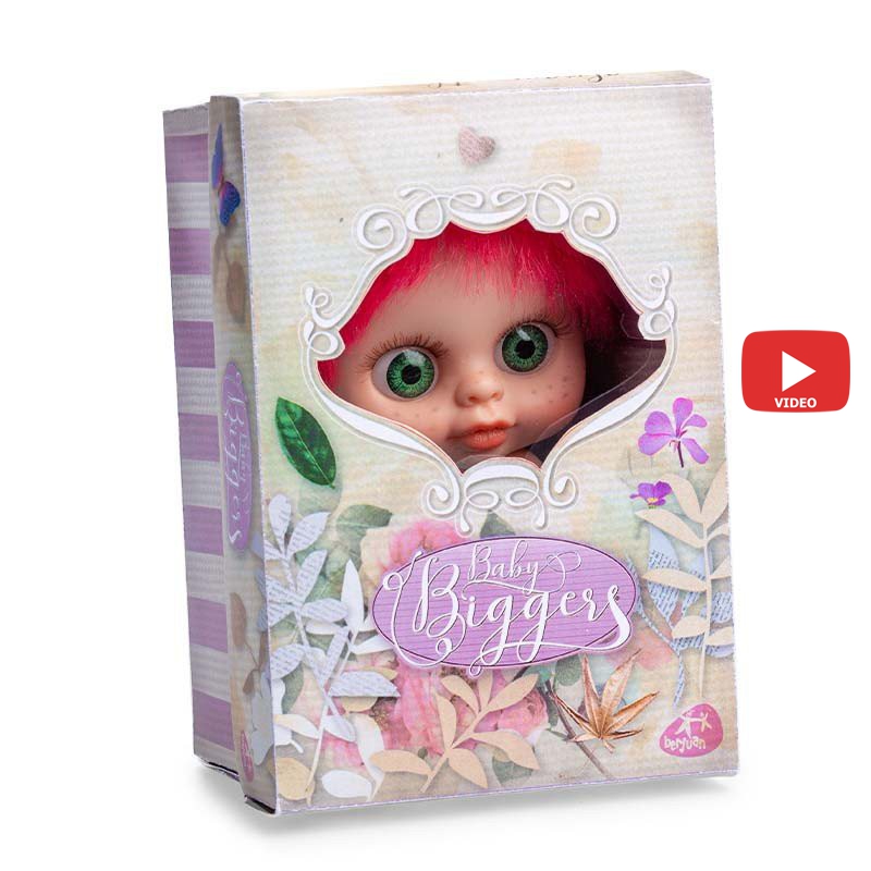 Пупс беби биггерс упакован в подарочную красивую плотную небольшую коробочку с резным окошком. Из окошка выглядывает милое личико Пеллирохи. Можно одеть переднюю крышку коробки на заднюю часть, чтобы получить полноценный виндоу-бокс, при этом куколку будет защищать плотная прозрачная клеёнка. Оригинальные Бэби Биггерс производятся исключительно в Испании под брендом Berjuan. Пломбы Onil Origin подтверждают, что кукла оригинальная.