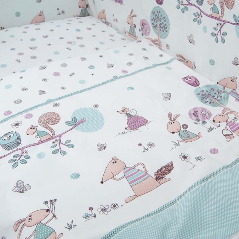 Детский постельный комплект Twins Sweet 8 элементов Forest Mint. 100% хлопок.