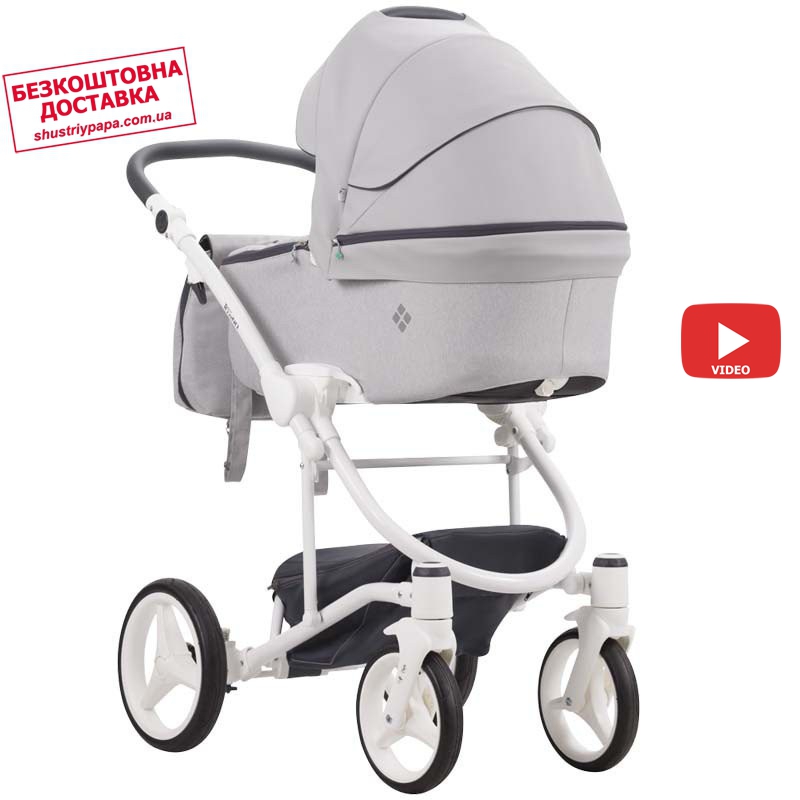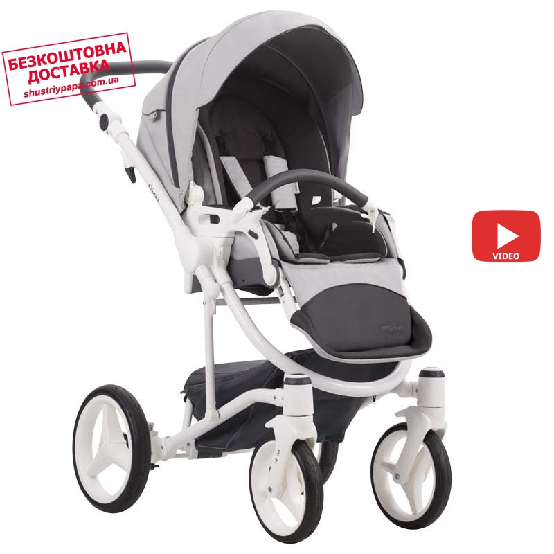 Детская универсальная коляска 2 в 1 Bebetto Torino 05 серая, белая рама