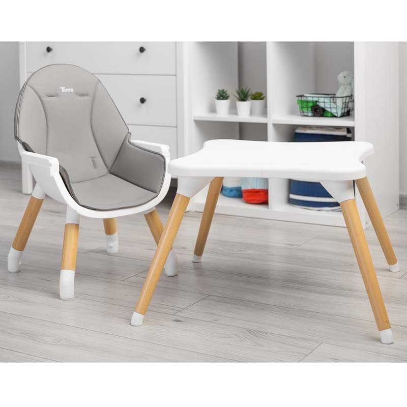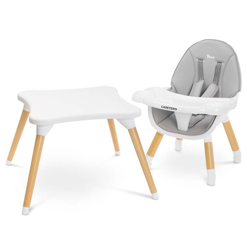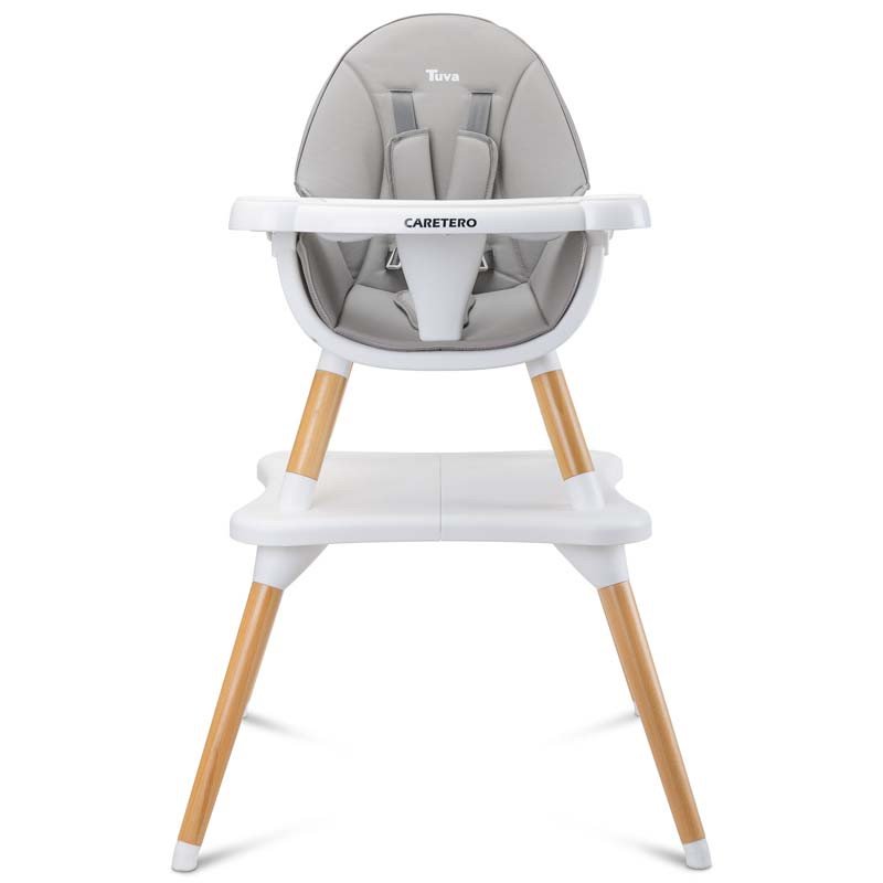 Caretero Tuva - это стульчик для кормления, сочетающий в себе уникальный скандинавский стиль с функциональностью. Благодаря простой конструкции его можно быстро адаптировать к потребностям ребенка. За несколько движений (не снимая ножек) из высокого стульчика Tuva превращается в стильный комплект стул + стол. Тува изготовлен из качественных материалов, что делает его прочным и безопасным. Имеет пятиточечные ремни и дополнительную защиту на лотке, предотвращающую скольжение малыша. Заботясь о комфорте ребенка и родителя, стул имеет двойной регулируемый поднос с двумя местами для чашки. Сиденье обшито мягкой и удобной в уходе обивкой. С другой стороны, деревянные ножки отделаны нескользящими накладками, которые полностью защищают пол от царапин.