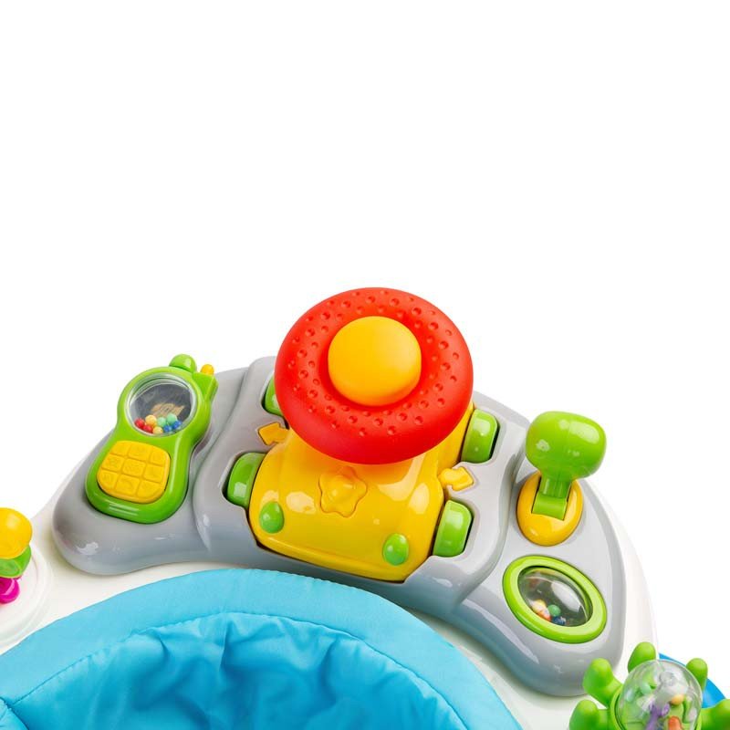 Stepp - это ходунки для чрезвычайно активных и любопытных детей, интересующихся окружающим миром. Спроектированы и изготовлены с акцентом на безопасность. Особый дизайн позволяет, среди прочего, регулировку положения сиденья по росту ребенка - так, чтобы ступни могли свободно касаться земли. Во-вторых, комфорт - спинка ходунков Stepp имеет анатомически адаптированную форму к телу. В-третьих, удовольствие - поворотное сиденье открывает доступ ко многим необычным игрушкам. Детей также порадует мощь аттракционов, представленных образовательной панелью. Звуки и свет привлекают внимание и развивают восприятие. Мини-руль, клаксон и другие аксессуары - эффективное средство от скуки.