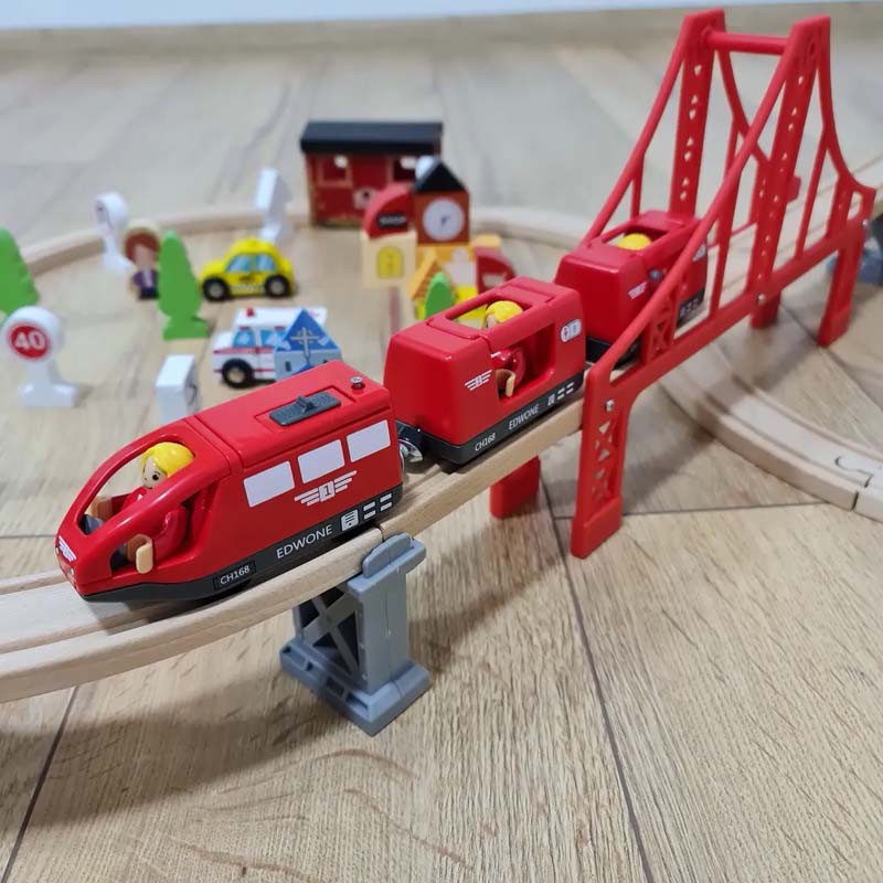 - Возможность сочетания элементов дороги других производителей, таких как: ECOTOYS, Brio, IKEA, ELC, Little Steps, Eichhorn, Woodyland, Tesco, Carousel;