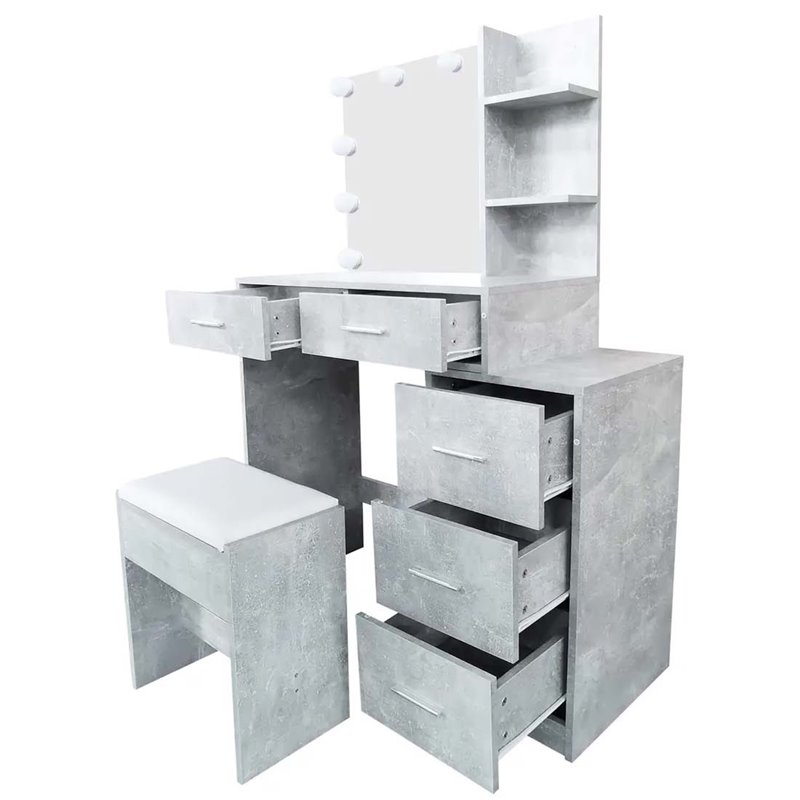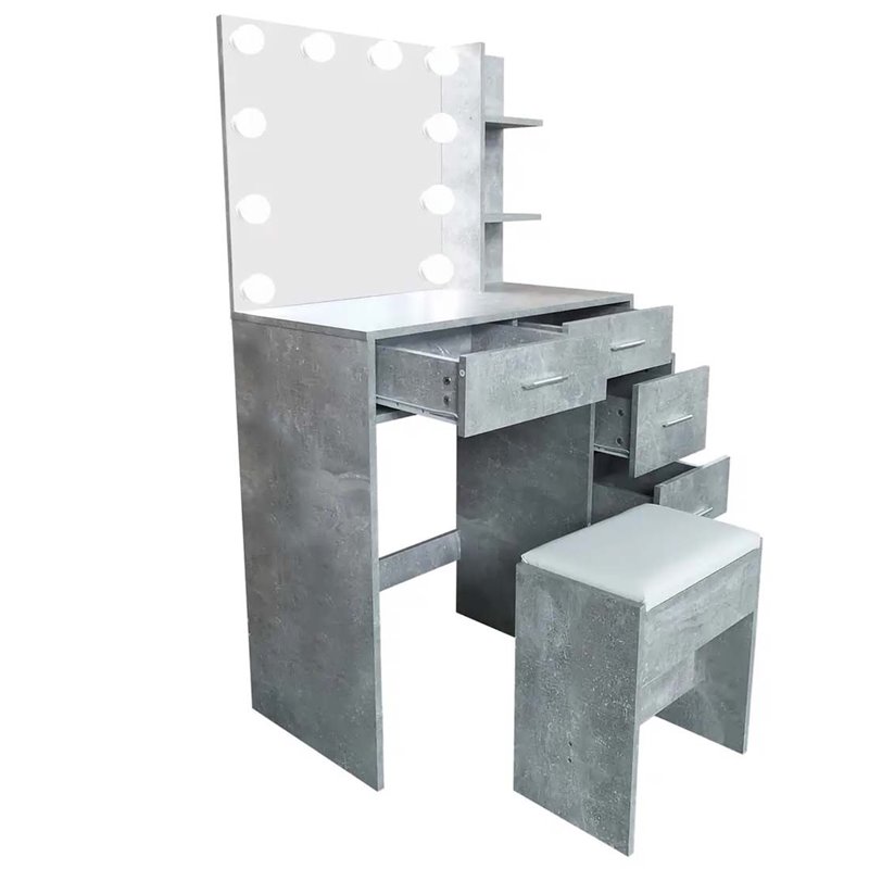 Стол туалетный + табурет Avko ADT 17 Beton с LED подсветкой серый