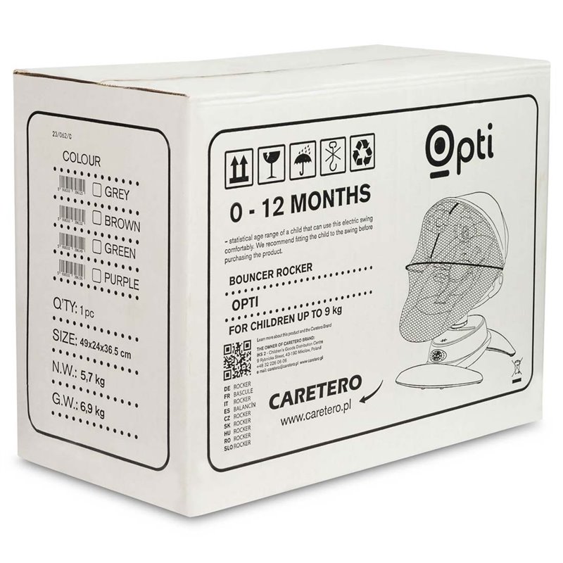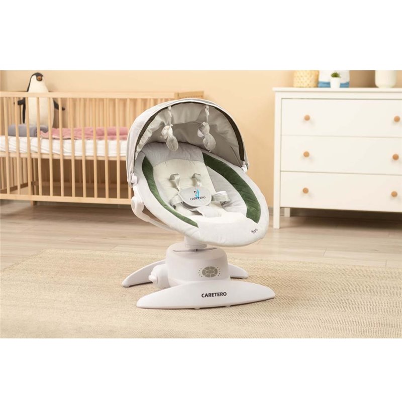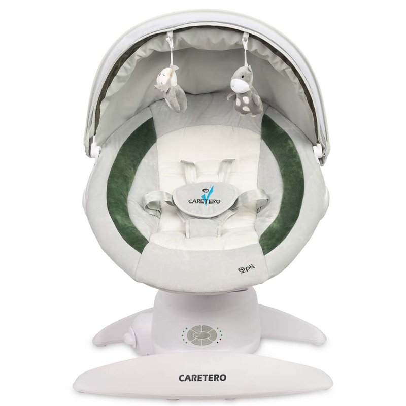 Шезлонг-качели для малыша Caretero Opti – это революционные детские качели, которые обеспечивают исключительный комфорт ребенка. Качели имеют 3 режима качания. Сидение полностью вращается на 360°, что позволяет изменять направление качания и поддерживать визуальный контакт с малышом. Сидение имеет 3-ступенчатую регулировку наклона – от лежащего положения, до сидячего. Автоматический детектор движения активирует качание и музыку. Настройки можно изменять на панели управления или на дистанционном пульте. Широкое сиденье обеспечивает удобное и безопасное положение ребенка. Состоящий капюшон защитит ребенка от чрезмерного солнца, а москитная сетка защитит от надоедливых насекомых. Качели Caretero Opti имеют 5-точечные ремни безопасности. Также для развития внимания малыша из капшона свисают две игрушки.