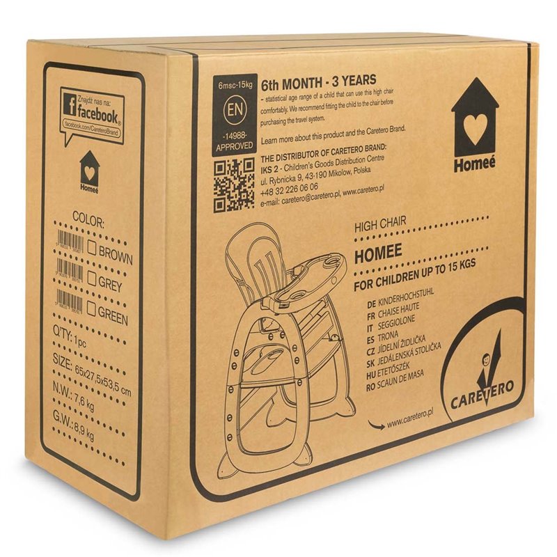 Стульчик для кормления Caretero Homee можно использовать по-разному. Это зависит только от возраста и потребностей ребенка. Так поначалу это классический стульчик для кормления, который облегчает кормление за столом. В другой раз - это набор стул + стол, который идеально подходит для развлечения и самостоятельной еды. Homee соответствует современным тенденциям в цветах и формах. Симпатичный принт с домиками на обивке подчеркивает его детский характер и бросается в глаза. Комфорт вашего ребенка во время еды и других занятий очень важен. Это обеспечивается мягким наполнением сиденья и его регулировкой. Поднос и спинку можно установить в одно из трех положений.