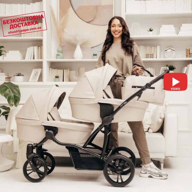 Универсальная коляска для двойни Bebetto B 42 PRO бежевая