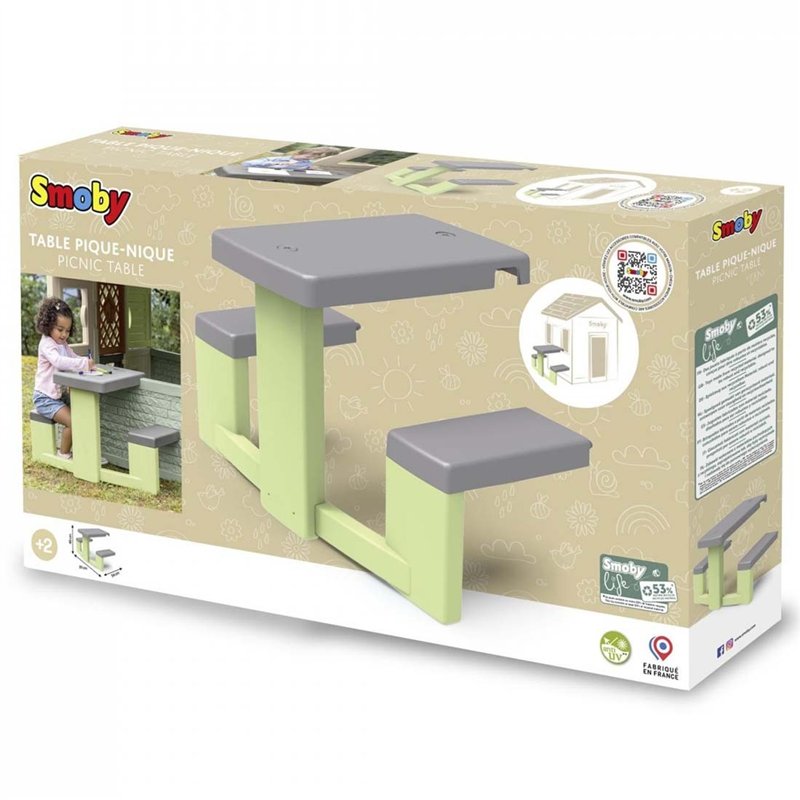 Со столом для пикника Smoby Life вы доставите идеальный детский игровой стол в свой сад. Это разумное дополнение к игровым домикам Smoby создает простор для творческой игры. Оборудованный двумя крепкими скамейками, стол предлагает место для приема пищи, игровых перерывов или увлекательных ролевых игр с друзьями. Ваши дети могут игриво потренироваться сервировать стол, подавать еду и общаться. Изготовлен из 53% переработанного пластика, устойчивого к УФ лучам, стол не только экологичен, но и идеально подходит для длительного использования на открытом воздухе. Даже под интенсивным солнечным светом качество цвета сохраняется, благодаря чему стол для пикника будет радовать вас на протяжении многих лет. Сочетайте его с другими аксессуарами, такими как летняя кухня Smoby Life или бочка для дождя, чтобы еще больше расширить игровой опыт.