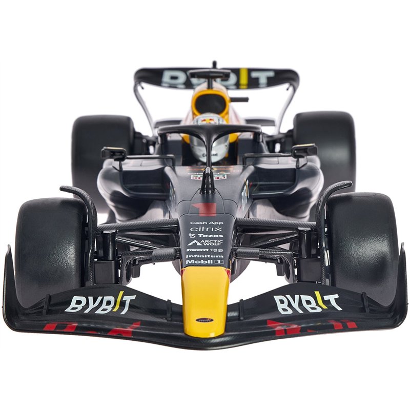Машинка на радиоуправлении Oracle Red Bull Racing RB18 в масштабе 1:12 перенесет вас в мир Формулы-1. Оригинальный автомобиль был разработан и изготовлен Red Bull Racing и участвовал в Чемпионате мира Формулы-1 2022 года. Именно на этой машине Макс Ферстаппен снова завоевал титул чемпиона мира среди пилотов, а Red Bull Racing в пятый раз выиграл Чемпионат мира среди конструкторов.