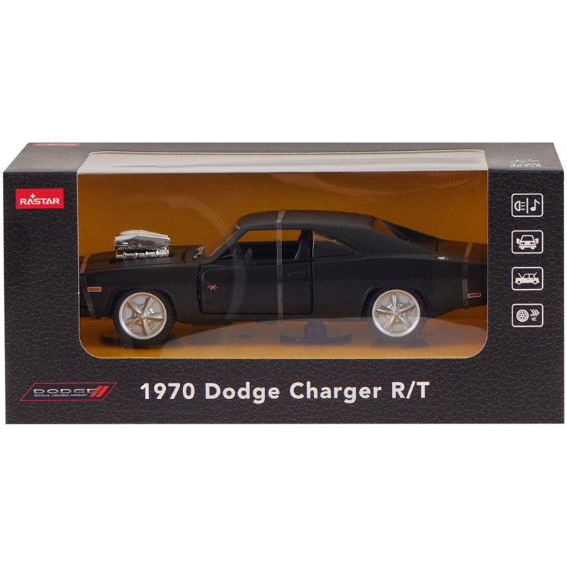 Машинка 1970 Dodge Charger R/T от бренда Rastar выполнена в масштабе 1:36 и полностью воспроизводит силуэт оригинального маслкара. Модель изготовлена из высококачественного пластика и устойчива к ударам и столкновениям. Шины изготовлены из резины для лучшего сцепления с поверхностью и реалистичности. Машинка оснащена независимой системой подвески для еще более увлекательной игры. Светодиодные фары пригодятся во время ночных гонок.