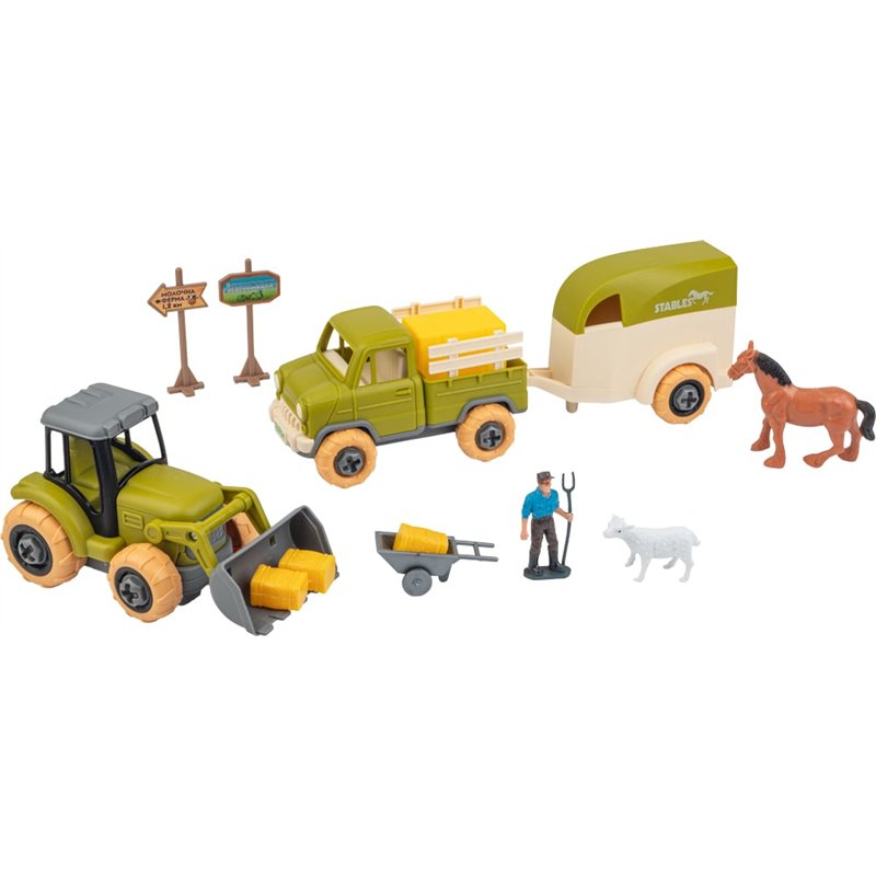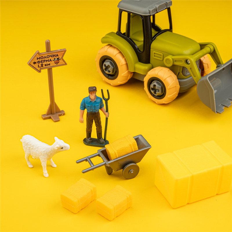 - Сельскохозяйственную технику можно собирать и разбирать много раз с помощью отвертки. Все детали имеют гладкие и неострые края, что гарантирует безопасность игрушки.
