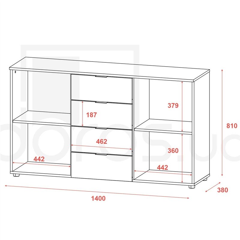 Комод Doros Рон 5, 4 ящика + 2 дверцы 140х38х81 см Кашемир