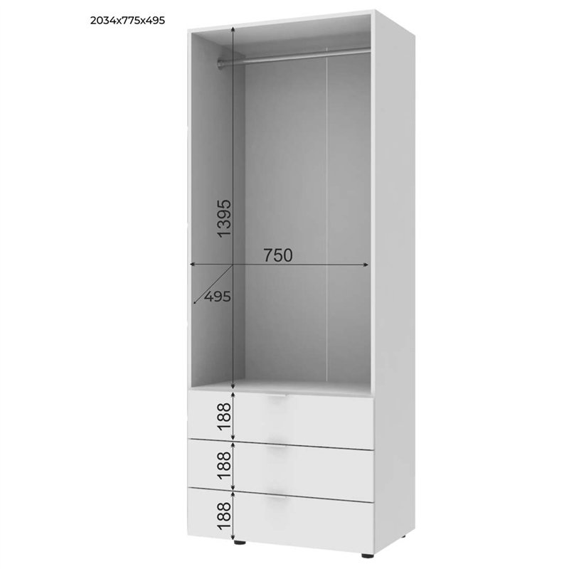 Шкаф распашный для одежды Doros Гелар – это идеальное решение для организации вашего пространства. Ее элегантный и современный дизайн придадут эстетическому облику любому интерьеру. Благодаря продуманным размерам этот шкаф не только выглядит стильно, но и обеспечивает достаточно места для хранения вашей одежды и аксессуаров. Она станет незаменимым элементом в вашей спальне или гостиной, помогая поддерживать порядок и уют. Шкаф Doros Гелар состоит из двух распашных дверей, за которыми находится штанга для одежды, а в нижней части размещены 3 ящика. Шкаф изготовлен из качественного ламинированного ДСП толщиной 16 мм, а задняя стенка из ДВП толщиной 2,6 мм. Размещен шкаф на регулируемой ножке-стоп Н30. Ящики имеют по умолчанию роликовые направляющие и пластиковые ручки, которые крепятся изнутри.