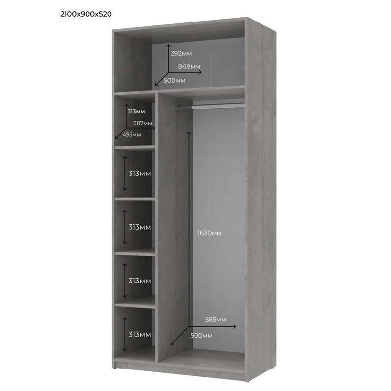 Шкаф распашный Doros Кен – это стиль и функциональность для вашего интерьера. Ищете идеальное решение для хранения одежды? Шкаф распашный Doros Кен – это сочетание современного дизайна и практичности. Ее элегантный белый цвет в сочетании с бетонными элементами делает этот шкаф настоящим украшением любой комнаты. Благодаря размерам она легко впишется в любое пространство, обеспечивая достаточно места для хранения ваших вещей. Не упускайте возможность обновить свой интерьер! Со шкафом Doros Кен вы получите не только стильный упор, но и надежное решение для организации пространства. Она станет вашим надежным помощником в поддержании порядка и стиля. Шкаф Doros Кен состоит из двух распашных дверей, за которыми находится с правой штанга для одежды, с левой стороны поличкт, а сверху по всей ширине изделия общая полка большого размера. Шкаф изготовлен из качественного ламинированного ДСП толщиной 16 мм, а задняя стенка из ДВП толщиной 2,6 мм.