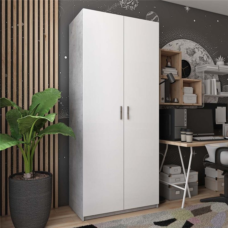 Шкаф Doros Кен, 2 дверцы со штангой Белый-Бетон