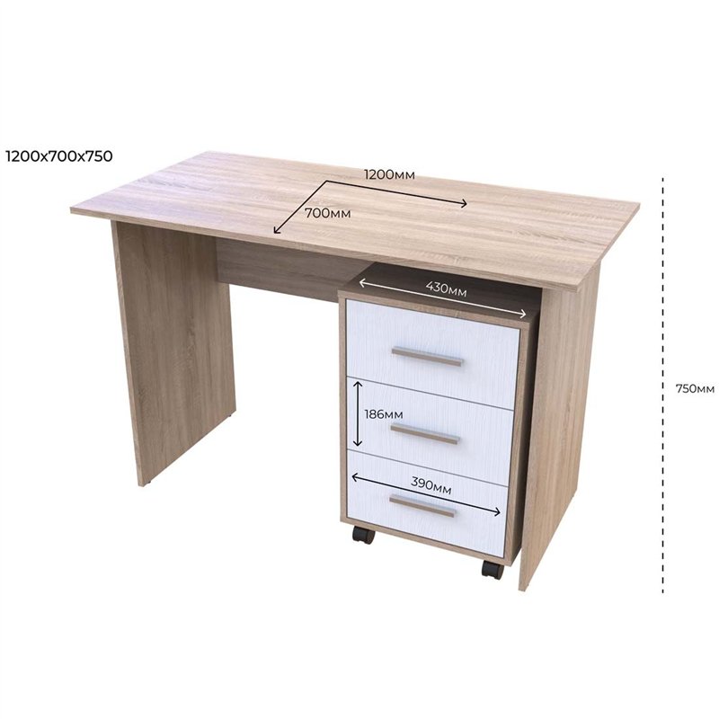 Стол офисный Doros Т3 с тумбой на 3 ящика 120х60 Дуб Сонома/Белый