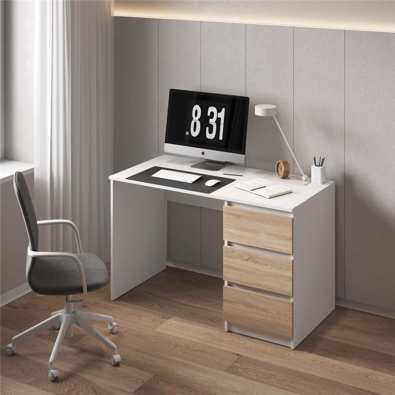 Стол письменный Vays R-1, 3 ящика (справа) Белый Дуб Сонома фасад