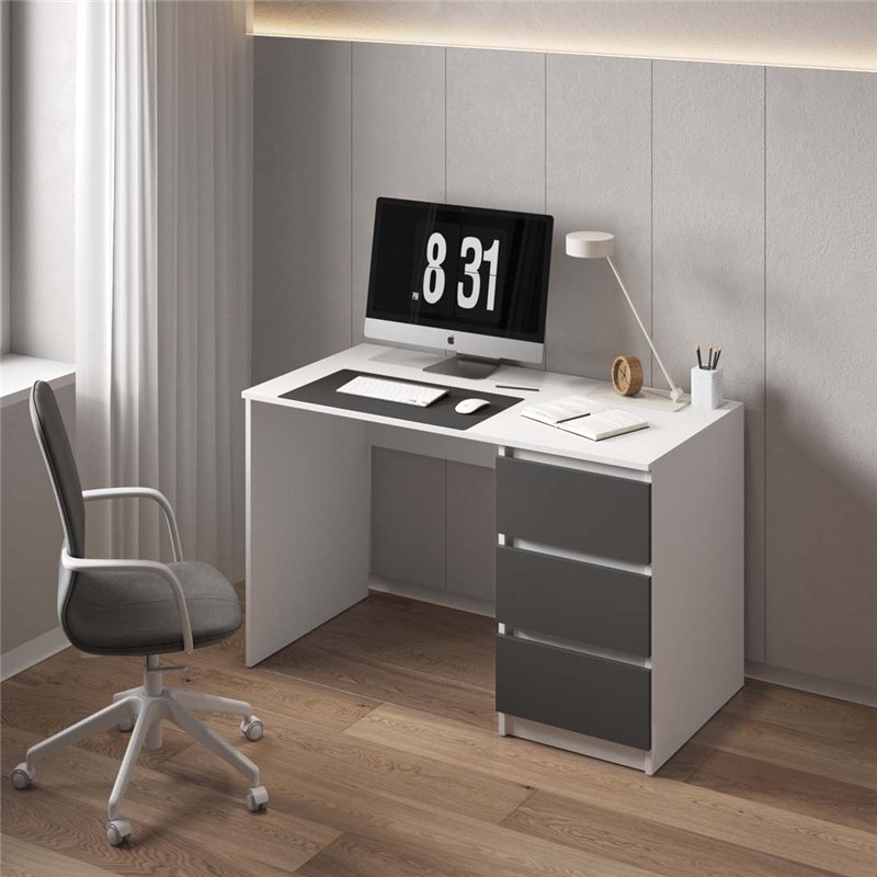 Стол письменный Vays R-1, 3 ящика (справа) Белый-Антрацит фасад