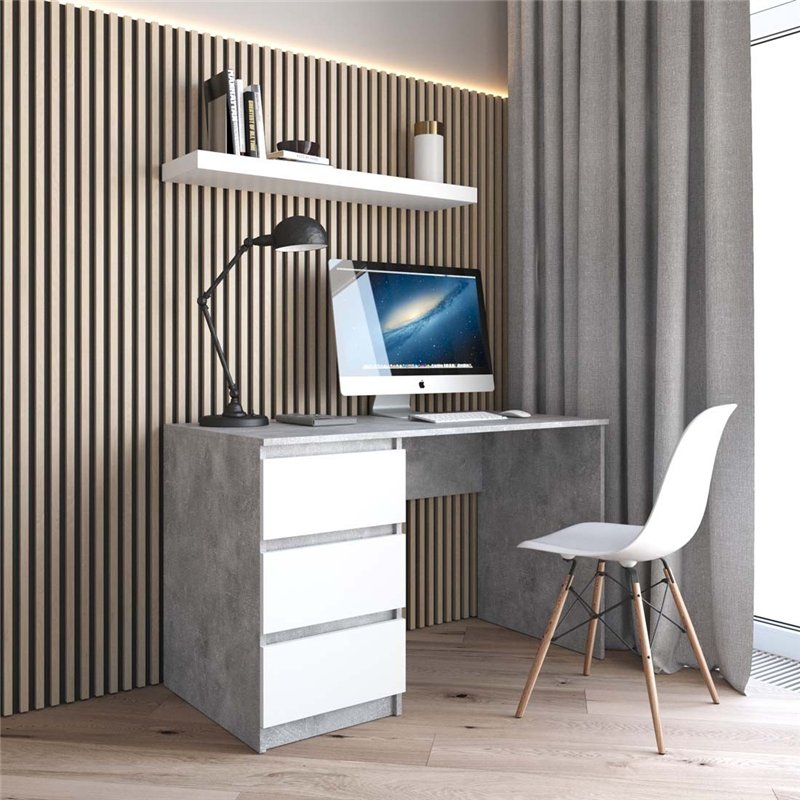 Стол письменный Vays R-13, 3 ящика (слева) Бетон-Белый фасад