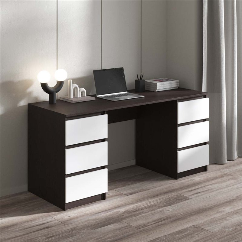 Стол письменный Vays R-2 на 2 тумбы (6 ящиков) Венге Темный-Белый фасад