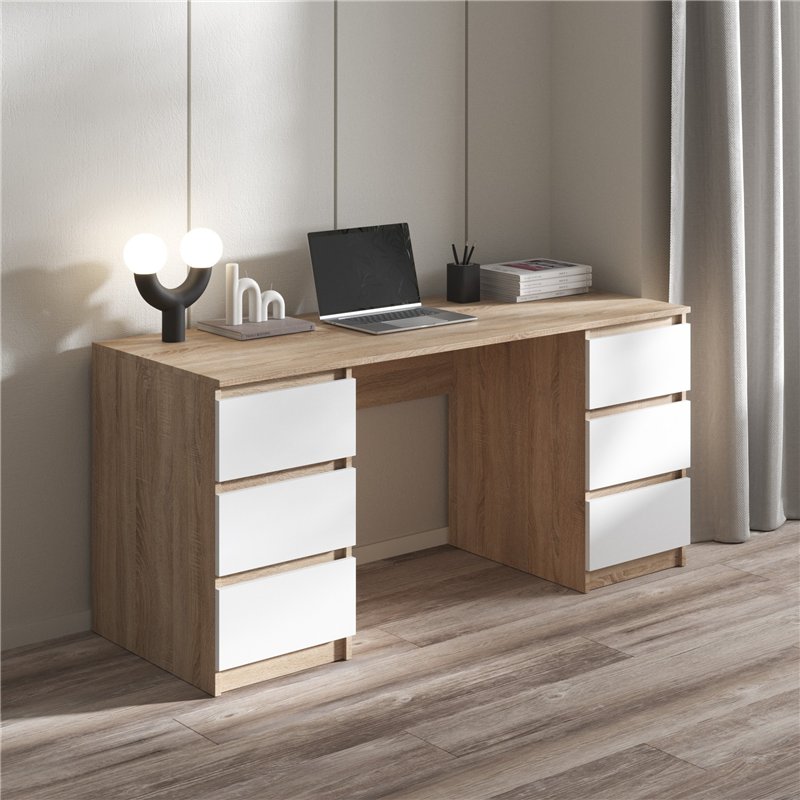 Стол письменный Vays R-2 на 2 тумбы (6 ящиков) Дуб Сонома-Белый фасад