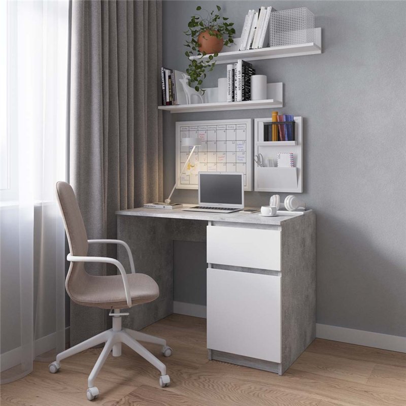 Стол письменный Vays R-18 с тумбой (справа) Бетон-Белый фасад