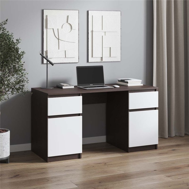 Стол письменный Vays R-34 с 2 тумбами Венге Темный-Белый фасад