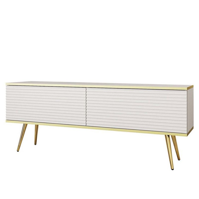 Комод-тумба под ТВ Perfect Home Oro RTV135 MDF 2 дверцы Белая с золотыми ножками