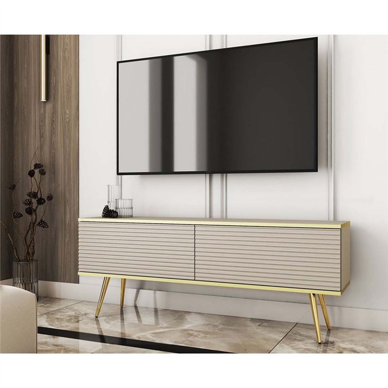 Комод-тумба под ТВ Perfect Home Oro RTV135 MDF 2 дверцы Бежевая с золотыми ножками