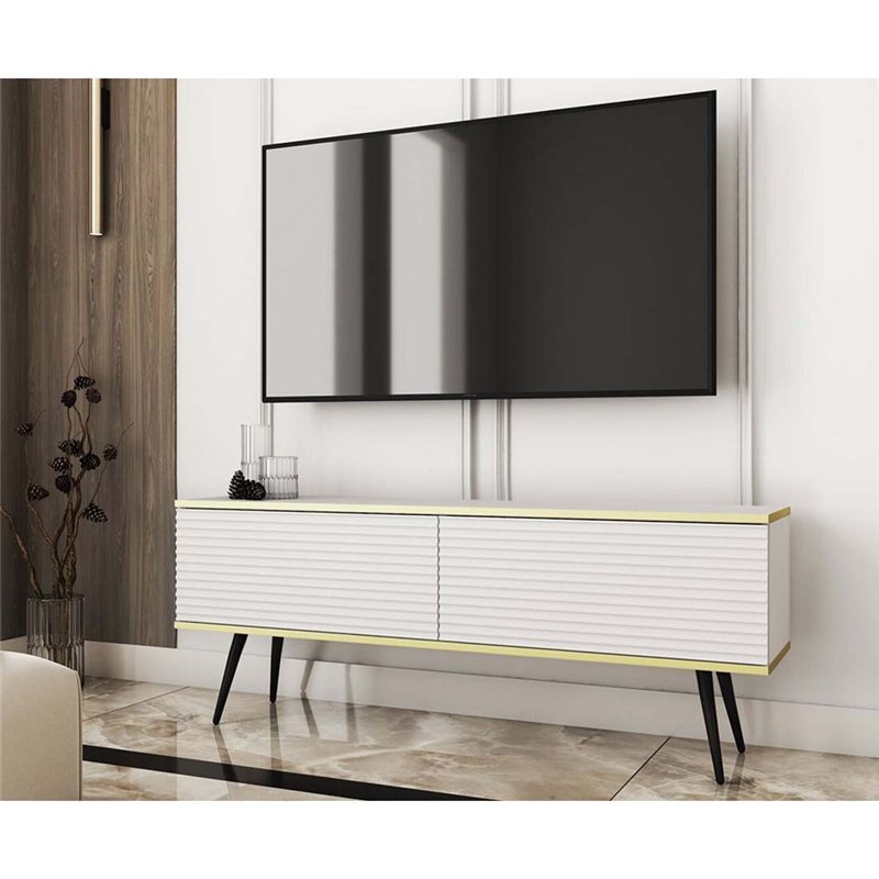 Комод-тумба под ТВ Perfect Home Oro RTV135 MDF 2 дверцы Белая с черными ножками