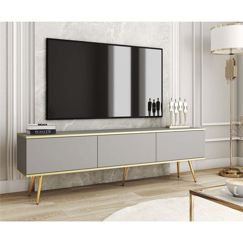Комод-тумба под ТВ Perfect Home Oro RTV175 на 3 дверцы Серая с золотыми ножками
