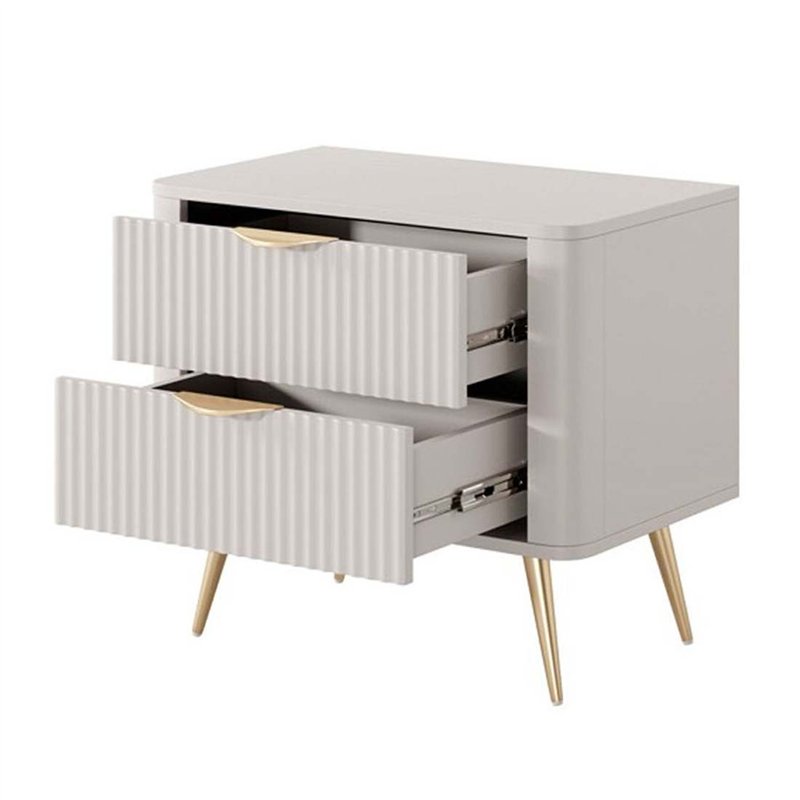 Прикроватная тумба Perfect Home Lante 2S, 2 ящика Бежевая на золотых ножках