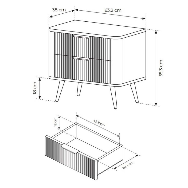 Благодаря современному дизайну прикроватная тумба Perfect Home Lante 2S органично впишется в современный интерьер вашей спальни или детской комнаты благодаря оригинальным решениям, а именно: фасад тумбы изготовлен из рифленого МДФ, углы тумбы скруглены, металлические ножки и ручки на один ящик окрашены. Тумба предназначена для длительной эксплуатации и способна выдерживать большие нагрузки. Корпус тумбы изготовлен из качественного ламинированного ДСП, а фасад МДФ, обеспечивающий долговечность, легкий уход и привлекательный внешний вид. В тумбе Lante 2S использованы телескопические направляющие полного выдвижения, что обеспечивает легкость в открытии ящика и доступ ко всем его уголкам. Этот компактный предмет мебели можно использовать для размещения ночного светильника, книг, журналов и других вещей. Тумба имеет два ящика.