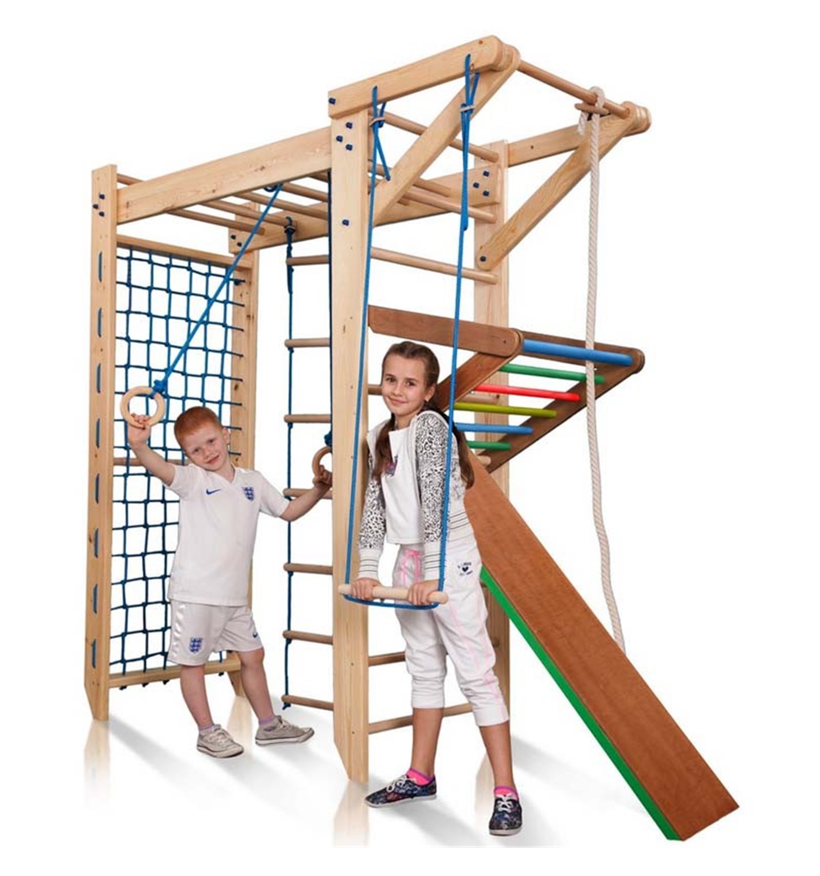 Спортивний куточок Sportbaby – компактний, з надійною конструкцією, виконаний з натуральних матеріалів.