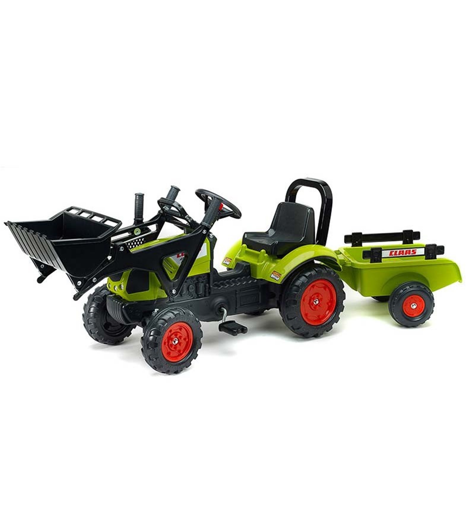 Цей трактор Falk Claas з ковшем спеціально розроблений для маленьких шукачів пригод від 2 до 5 років, і є точною копією з педалями моделі Claas Arion 410. Ви можете легко прикріпити причіп з бічними панелями, що дозволить транспортувати пісок, листя, ґрунт і каміння з одного кінця саду в інший.