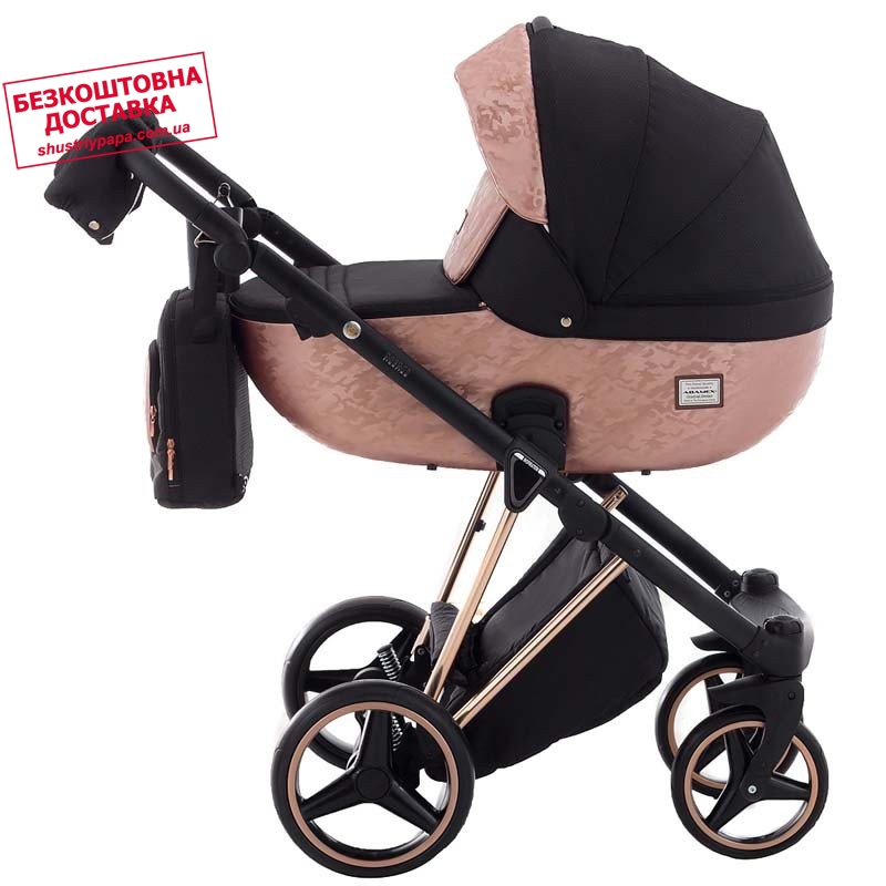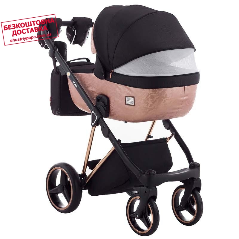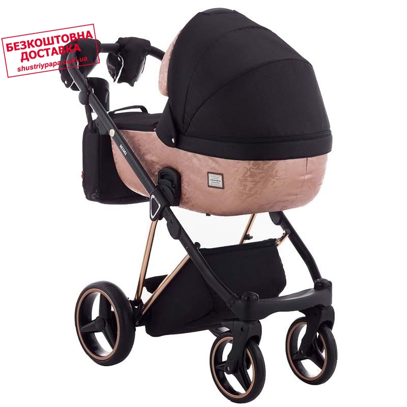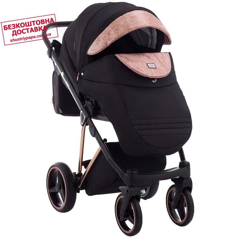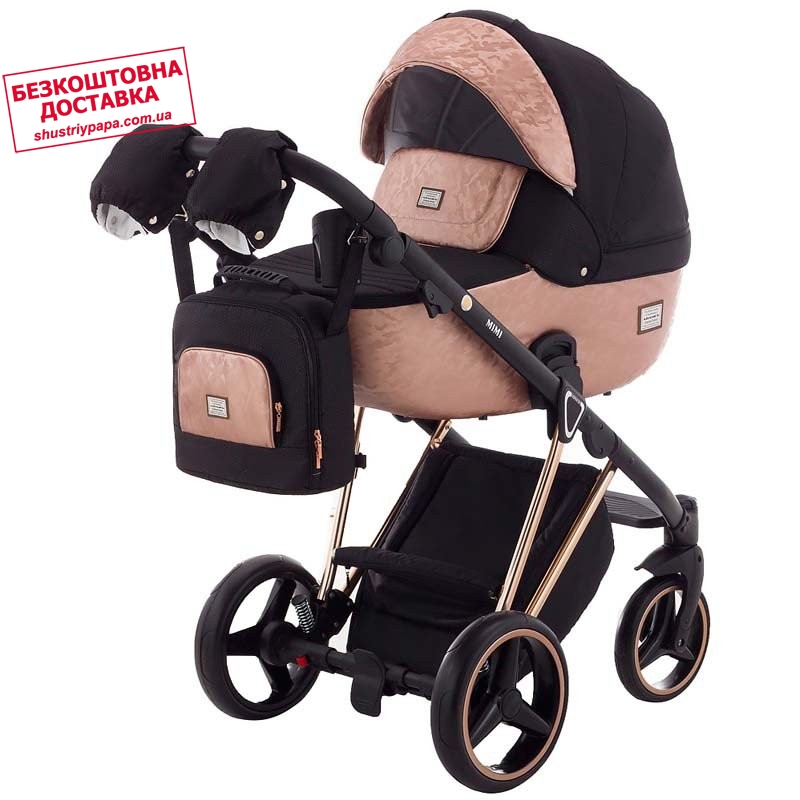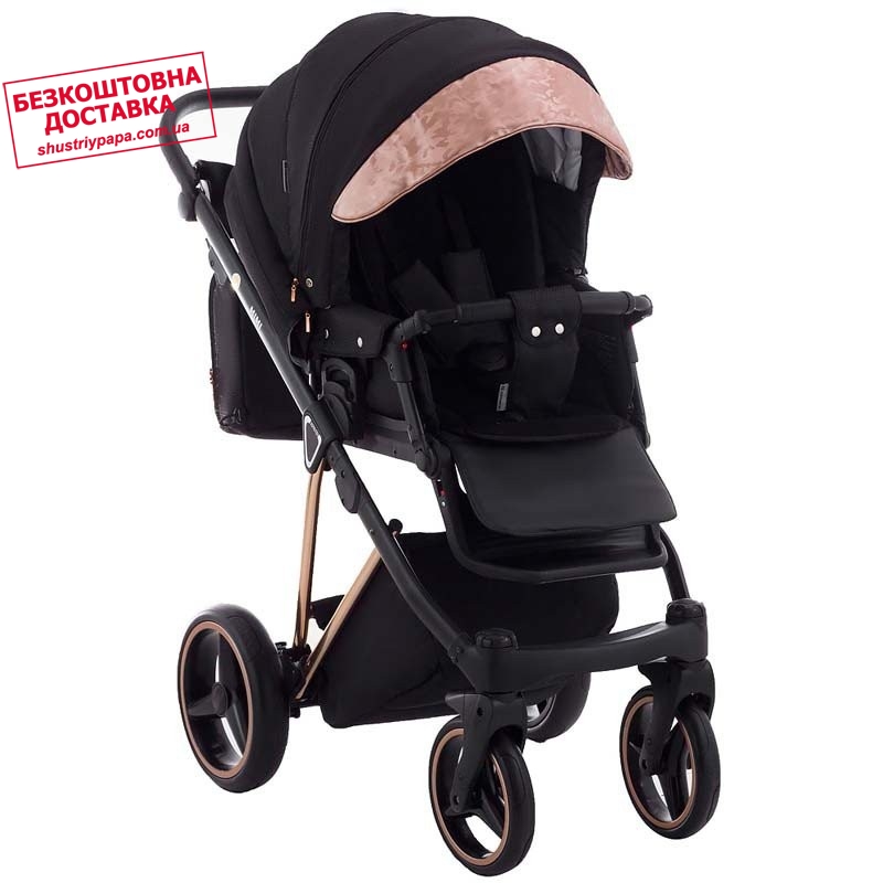 Дитяча коляска 2 в 1 Adamex Mimi BR604, чорна тканина, мідна еко-шкіра