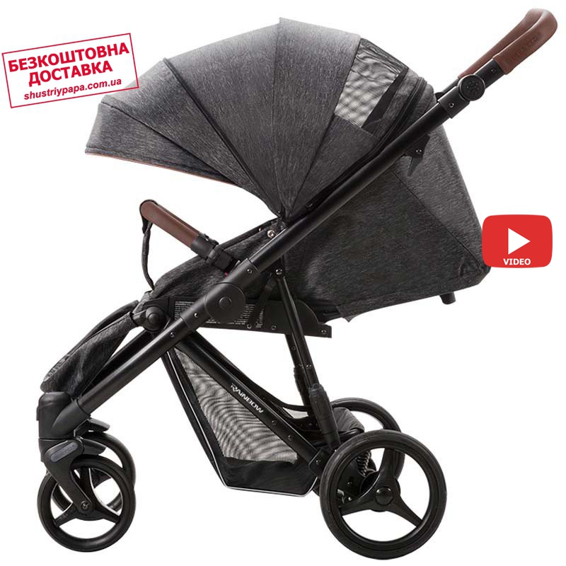 Конструкція амортизована, задні та бокові амортизатори регулюються та можуть бути налаштовані в режимі soft/hard, залежно від поверхонь дороги. Система швидкого складання Easy to Fold означає, що скласти коляску дуже просто, варто лише натиснути на кнопку на рамі. Компактні розміри після складання дозволяють брати коляску в подорожі.
