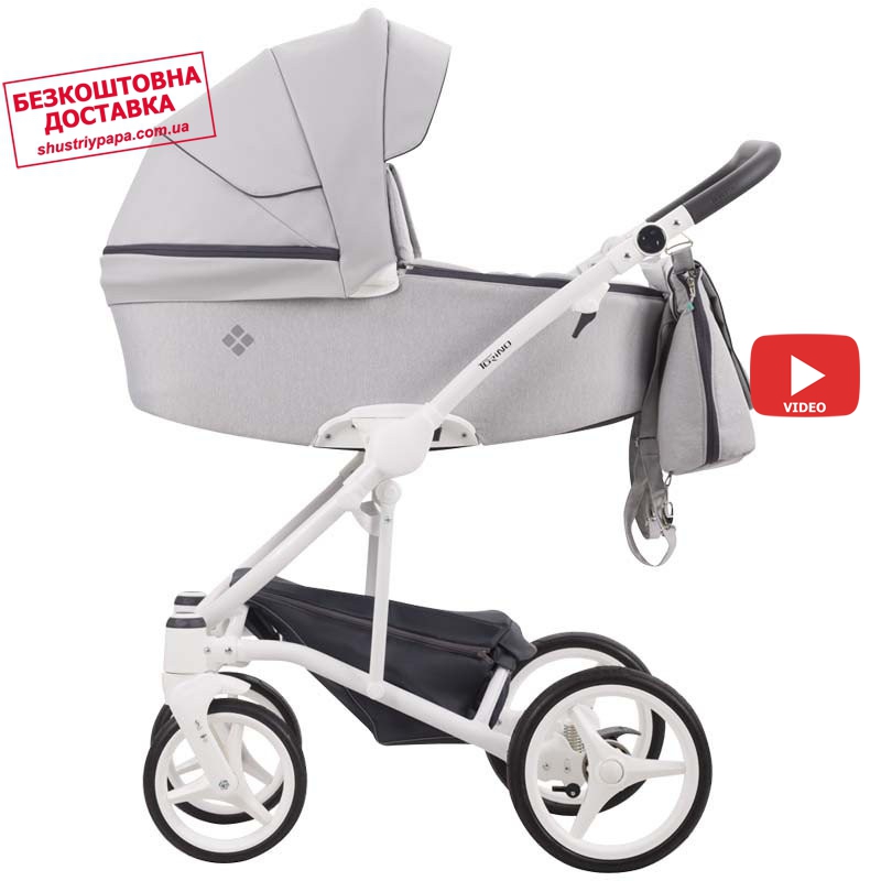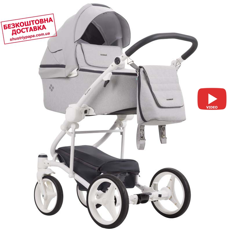 Дитяча універсальна коляска 2 в 1 Bebetto Torino 05 сіра, біла рама