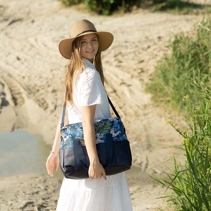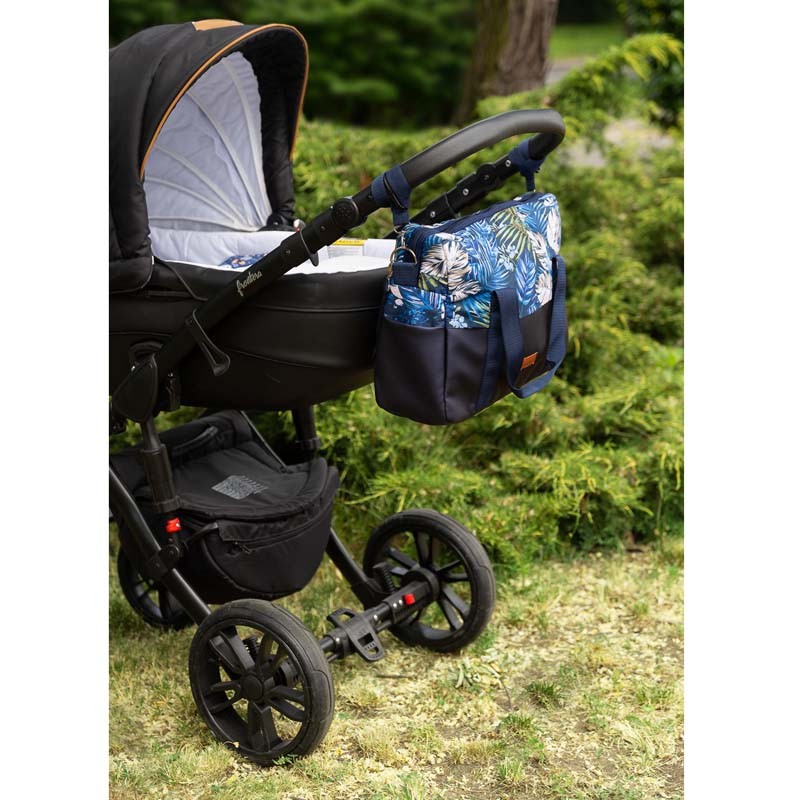 Стильна і зручна, брендовий сумка для мами, яка ідеально підходить для любої коляски. Ось лише деякі її переваги: низ з екошкіри, внутрішні кишені, функціональні відділення і стійка до забруднень підкладка. Крім того, сумка оснащена універсальними гачками для підвішування на рамі коляски, двома ручками і практичним плечовим ременем.