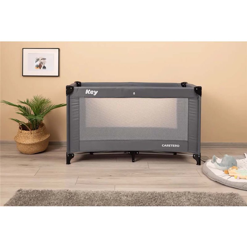 Манеж Key від Caretero - чудове рішення для вашої дитини, яке забезпечить безпечне, комфортне та практичне місце для гри та сну, як на відкритому повітрі, так і вдома, а також може бути використаний під час подорожі. Манеж легко транспортувати. У складеному вигляді займає мало місця, та легко поміщається у комфортну та зручну сумку, яка входить у комплект. КОкрім цього, у комплект манежу входить розкладний туристичний матрац розміром 120х60 см. Матрац компактно складається і поміщається в сумку для зберігання.
