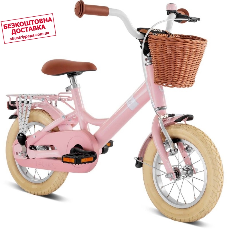 Двоколісний велосипед Puky Youke 12 Alu Classic Retro - безпечний велосипед для дітей від 3 років із заниженою алюмінієвою рамою, легким ходом педалей і двома видами гальм. У моделі Classic Retro велосипед має індивідуальний образ, в сучасному ретро-стилі з коричневими ручками і сидінням, молочними колесами і плетеним переднім кошико.