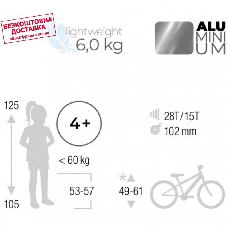 Довжина ніжки дитини по внутрішній стороні: 53-57 см.