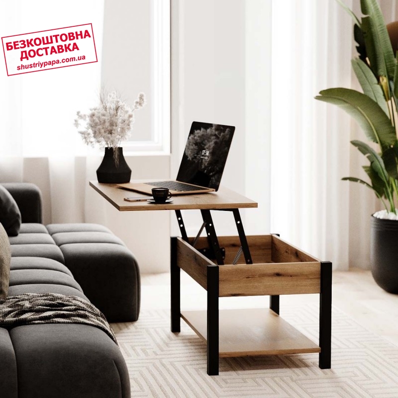 Стіл-трансформер Desk 2.0 - стане вашим незамінним помічником для роботи в неформальній обстановці. Це компактний журнальний стіл, який за декілька секунд можна перетворити в робочий та займатися справами, навіть не встаючи з дивана. Цей компактний журнальний стіл з висотою столу в складеному вигляді 450 мм, що ідеально підходить для стандартних меблів висотою 400-500 мм для сидіння. При розкладенні його висота становить 680 мм, що забезпечує комфортні умови для роботи за столом.