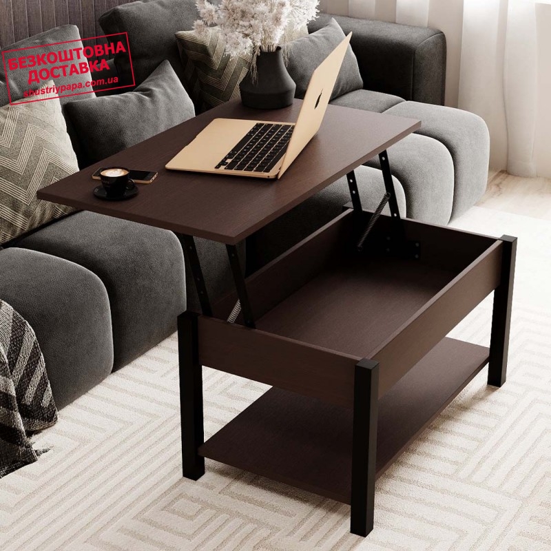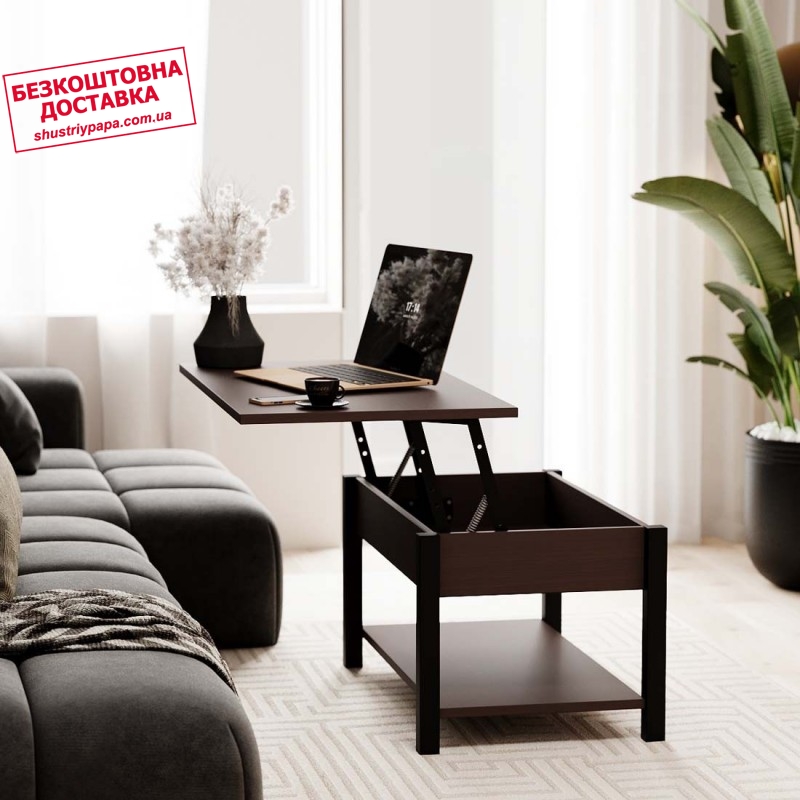 Стіл-трансформер Desk 2.0 - стане вашим незамінним помічником для роботи в неформальній обстановці. Це компактний журнальний стіл, який за декілька секунд можна перетворити в робочий та займатися справами, навіть не встаючи з дивана. Цей компактний журнальний стіл з висотою столу в складеному вигляді 450 мм, що ідеально підходить для стандартних меблів висотою 400-500 мм для сидіння. При розкладенні його висота становить 680 мм, що забезпечує комфортні умови для роботи за столом.