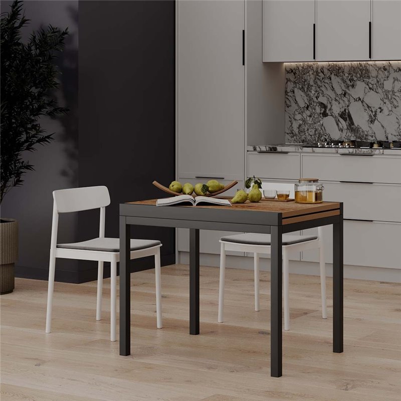 Компактний, лаконічний і практичний кухонний стіл трансформер Armstrong від Art in Head стане ідеальним вибором для будь-якого приміщення. Цей стильний стіл легко розміщується в невеликих кімнатах. Завдяки простій конструкції, яка дозволяє збільшувати площу стільниці вдвічі, він є надійним і універсальним у використанні. Просто потягніть стільницю на себе, і вона подвоїться в розмірах. Металеві ніжки забезпечують стійкість і довговічність столу. Стіл виготовлений з розрахунком на тривалу експлуатацію. Стільниця з ЛДСП товщиною 32 мм забезпечує зносостійкість, а металеві ніжки, пофарбовані в білий або темний колір, додають елегантності і міцності конструкції. У складеному вигляді стіл має розміри 89x69x75 см, що робить його ідеальним для невеликих кімнат, квартир-студій та смарт-житла. Він може використовуватися як журнальний стіл або обідній стіл для невеликої сім’ї. При розкладенні стіл подвоює свою довжину, досягаючи 178 см. Це дозволяє використовувати його як повноцінний обідній стіл, за яким зручно розмістяться вся сім’я або невелика компанія друзів. Armstrong доступний в привабливих кольорах, витриманих у природній колористичній гамі, що додає йому ще більше естетичної привабливості. Придбавши стіл-трансформер Armstrong ви будете задоволені, та приємно враженні впродовж всього часу його використання.