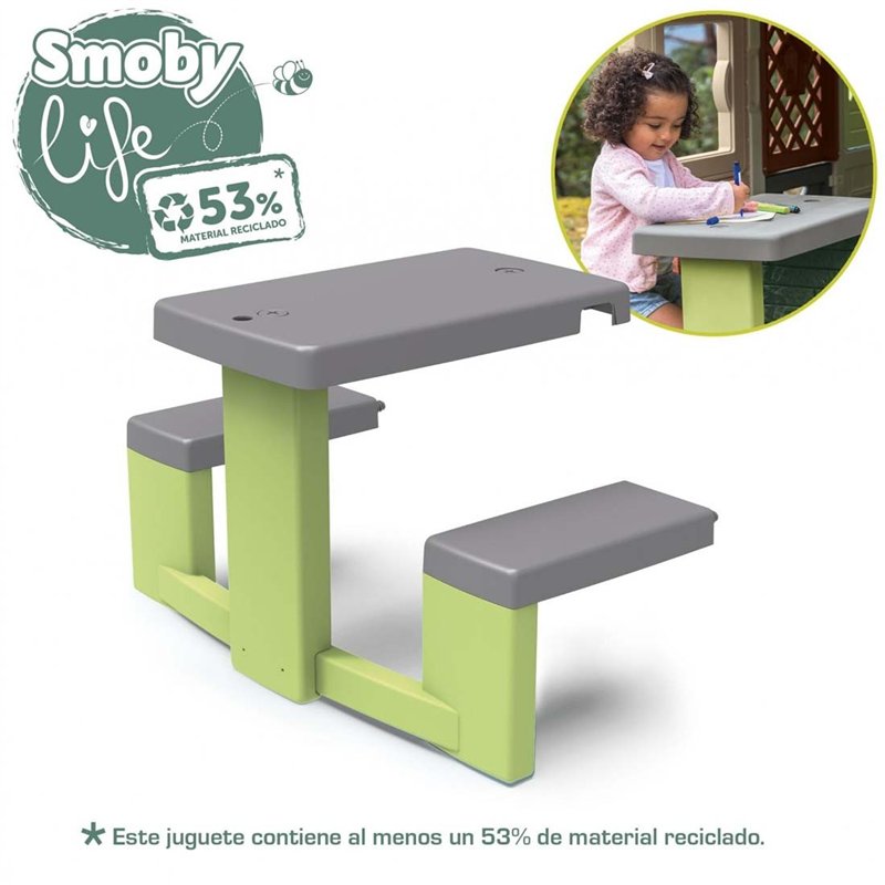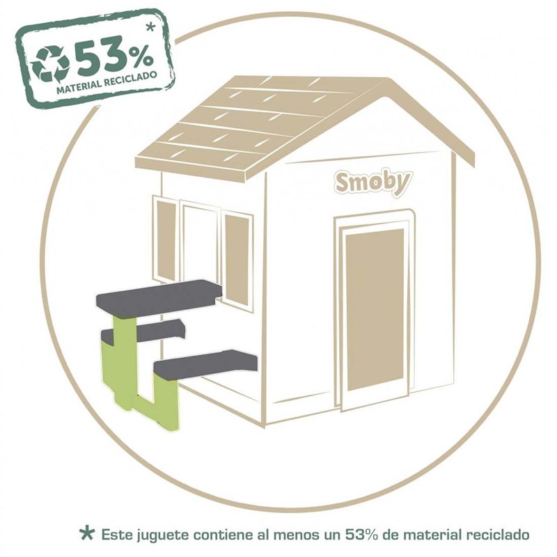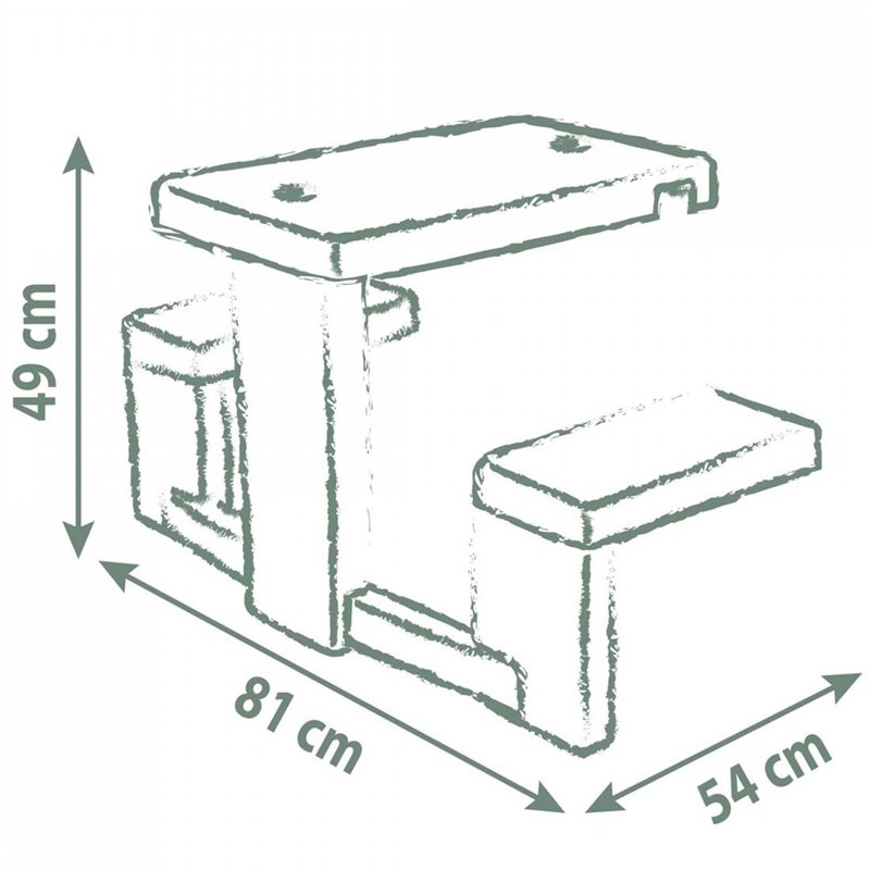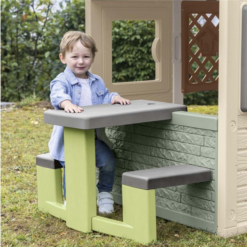 Зі столом для пікніка Smoby Life ви принесете ідеальний дитячий ігровий стіл у свій сад. Це розумне доповнення до ігрових будиночків Smoby створює простір для творчої гри. Обладнаний двома міцними лавками, стіл пропонує місце для прийому їжі, ігрових перерв або захопливих рольових ігор з друзями. Ваші діти можуть грайливо потренуватися сервірувати стіл, подавати їжу та спілкуватися. Виготовлений з 53% переробленого пластику стійкого до УФ променів, стіл не тільки екологічний, але й ідеально підходить для тривалого використання на відкритому повітрі. Навіть під інтенсивним сонячним світлом якість кольору зберігається, завдяки чому стіл для пікніка буде радувати вас протягом багатьох років. Поєднуйте його з іншими аксесуарами, такими як літня кухня Smoby Life або бочка для дощу, щоб ще більше розширити ігровий досвід.